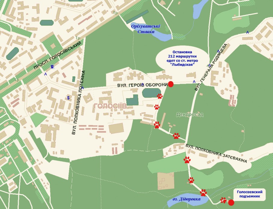 На общественном транспорте едем на  212-й маршрутке от метро «Лыбидская», до остановки «Учебный корпус №2». Отсюда вниз по улице Генерала Родимцева, которая ведёт прямо  к озеру.