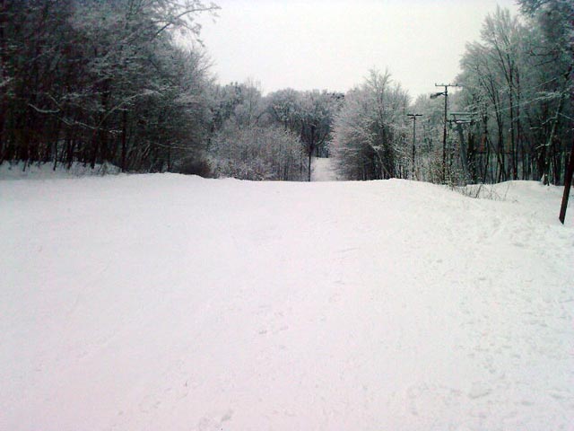 Часть трассы не введёна в эксплуатацию по причине слишком большой высоты бугеля по сравнению с поверхностью склона.